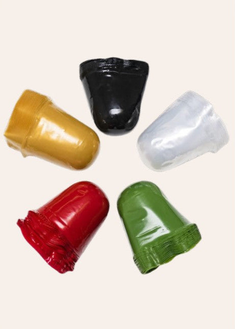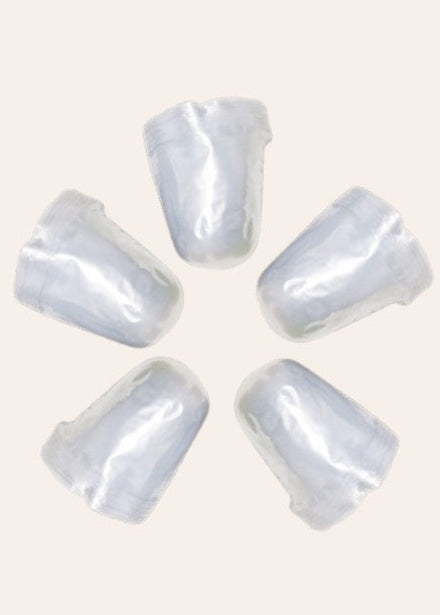 Food safe, FDA and EU compliant, meat shank caps. Use to cover exposed shank bone ends to prevent piercing of cryo-bag, vacuum, or shrink bag, packaging.